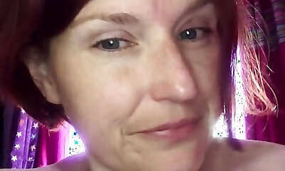 Cosmic girl with purple hair, immense tits, fat ass and tattooed bod shows you up close how wet her pussy gets