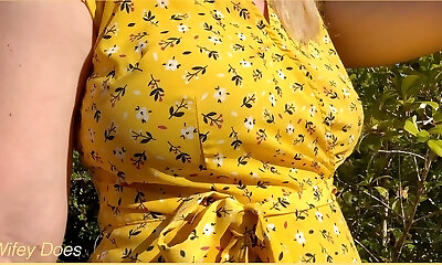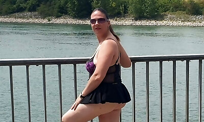nippleringlover horny cougar pissing outdoors showing pierced pussy and extreme pierced nipples compilation 1