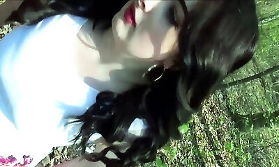 Beautiful Japanese gal bellows noisy while having her huge hooters and rump pumped in an outdoor scene - internal cumshot!