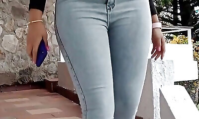 Hijab big fat ass booty white busty mature milf ambling outdoor in sexy mini dress and flashing huge bouncy rump in public