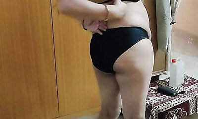 Big Tits Big Ass All Natural Finest Brunette MILF shows Ass and Pussy while a Striptease No Panties